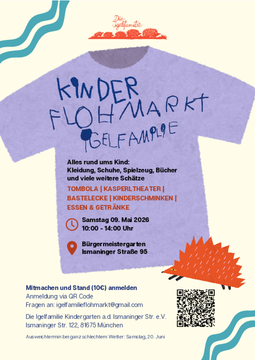 AdresseBürgermeistergartenIsmaninger Str. 95, 81675 München BogenhausenKinderflohmarkt der Igelfamilie im Bürgermeistergarten Beim Kinderflohmarkt der Igelfamilie werden gut erhaltene..weitere InformationenKinderflohmarkt der Igelfamilie im BürgermeistergartenDetails & Kontakt