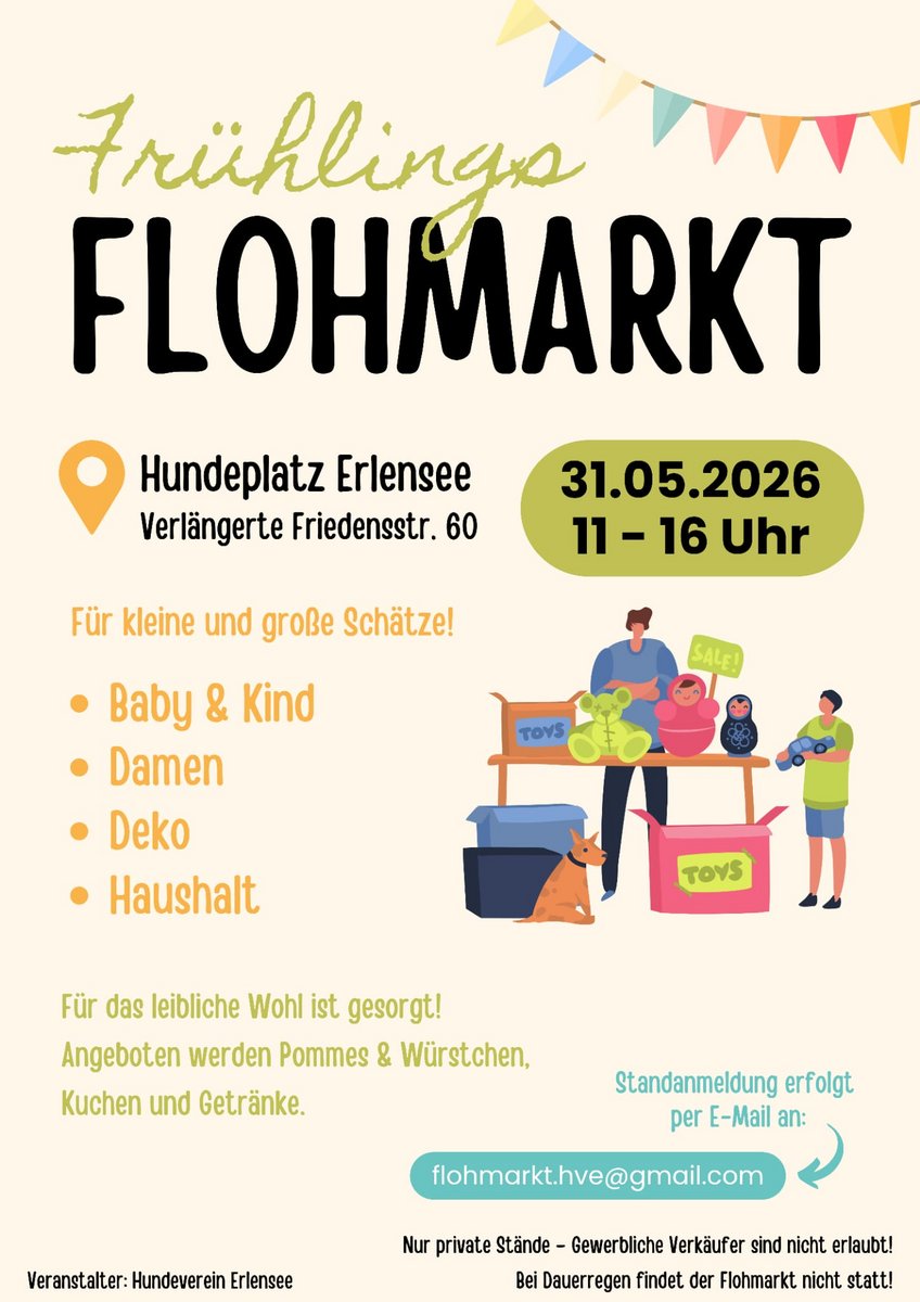 63526 ErlenseeDatum27.03.2026Zeit 18:30 - 21:30 Uhr Typ- Flohmarkt mit Ständen