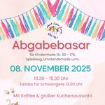 Datum08.11.2025Zeit 13:30 - 15:30 Uhr Typ- vorsortierter Basar