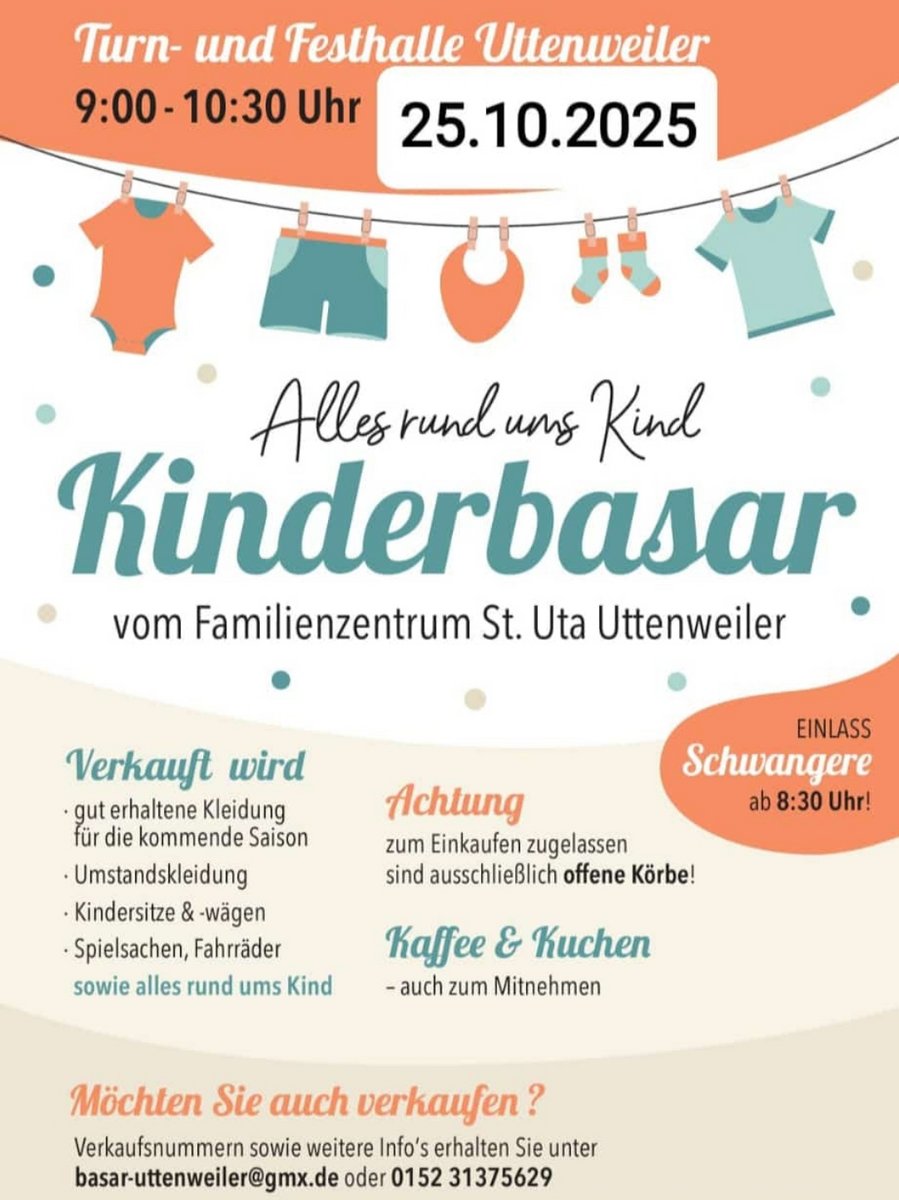 - Kinderbasar vom Familienzentrum St. UtaTurn- und Festhalle Uttenweiler