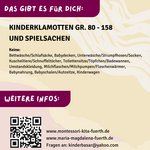 AdresseÖkumenisches ZentrumGerhart-Hauptmann-Straße 21, 90763 FürthRiesen Auswahl an Spielsachen und Klamotten für dein Kind! 📅 Termine: 13.03.2026: 18:00 – 19:30 Uhr 1..weitere InformationenRiesen Auswahl an Spielsachen und Klamotten für dein Kind!Details