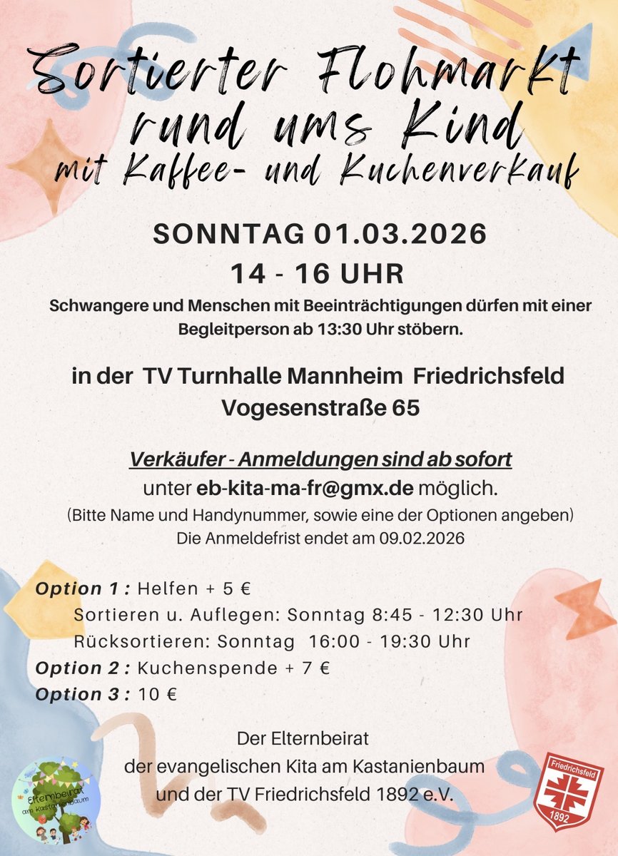 - Sortierter Flohmarkt rund ums KindTurnhalle Friedrichsfeld - Eingang über Rittershofener Straße 3
