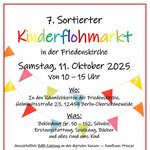 7.Sortierter Kinderflohmarkt in der Friedenskirche am Samstag den 11. Oktober 2025 von 10-15 Uhr in der Helmholtzstraße 23 in 12459 Berlin.
