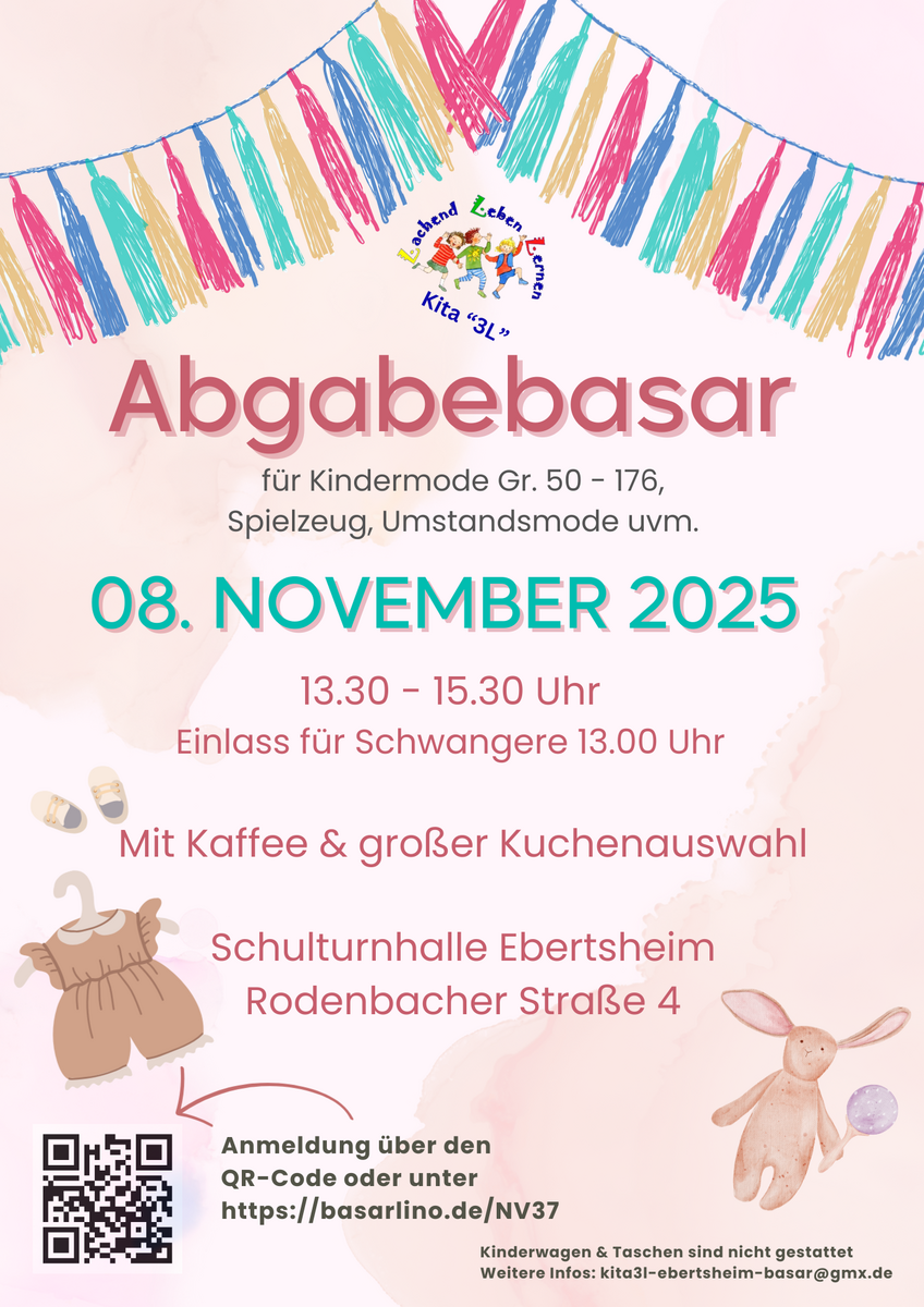 Kommt gerne vorbei! :-)Kontakt mit dem Organisator aufnehmen - KinderflohmarktKita "3L" Lachend Leben Lernen - Schulturnhalle Ebertsheim
