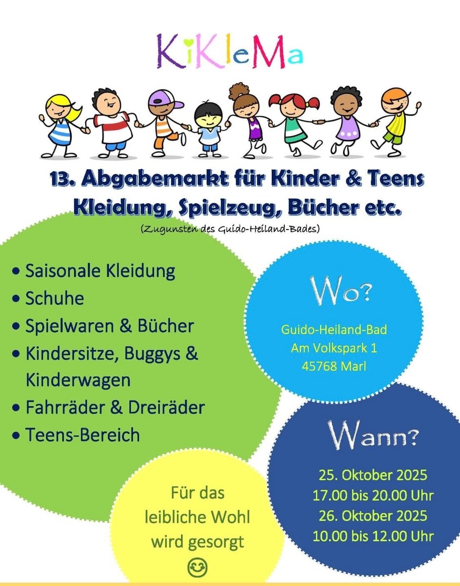 45768 MarlDatum25.10.2025Zeit 17 - 20 Uhr Typ- vorsortierter Basar