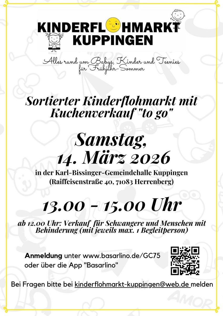 Anmeldung und Infos unter: www.basarlino.de/UX40Kontakt mit dem Organisator aufnehmen - 58. Kinderkleiderbasar AlthengstettFesthalle Althengstett