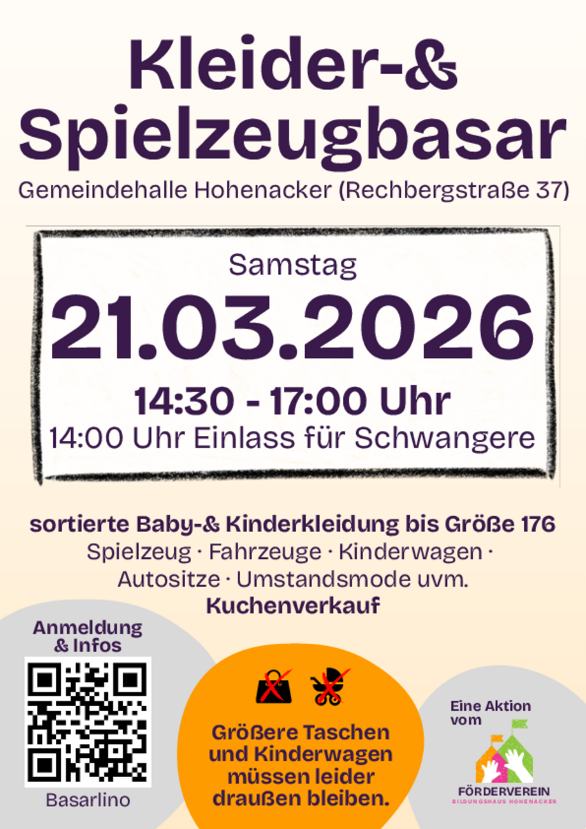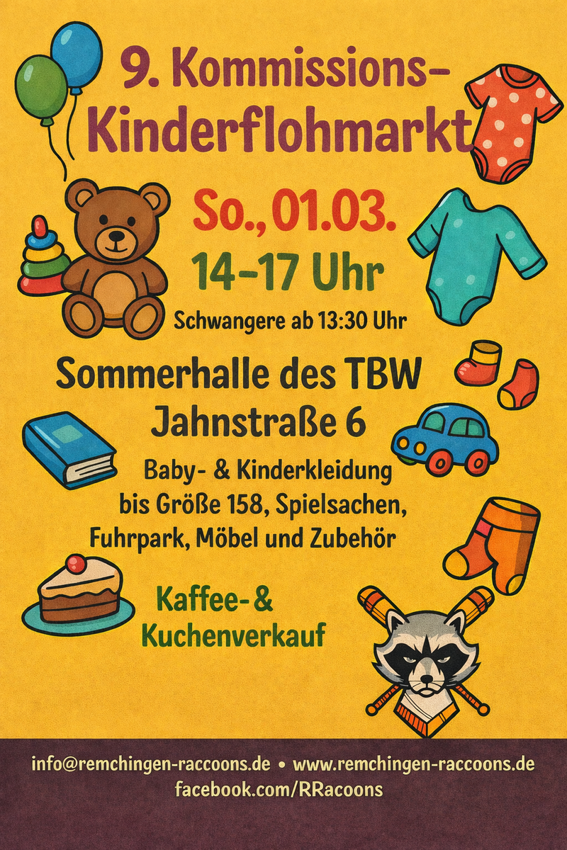 Datum28.02.2026Zeit 9:30 - 12 Uhr Typ- vorsortierter Basar