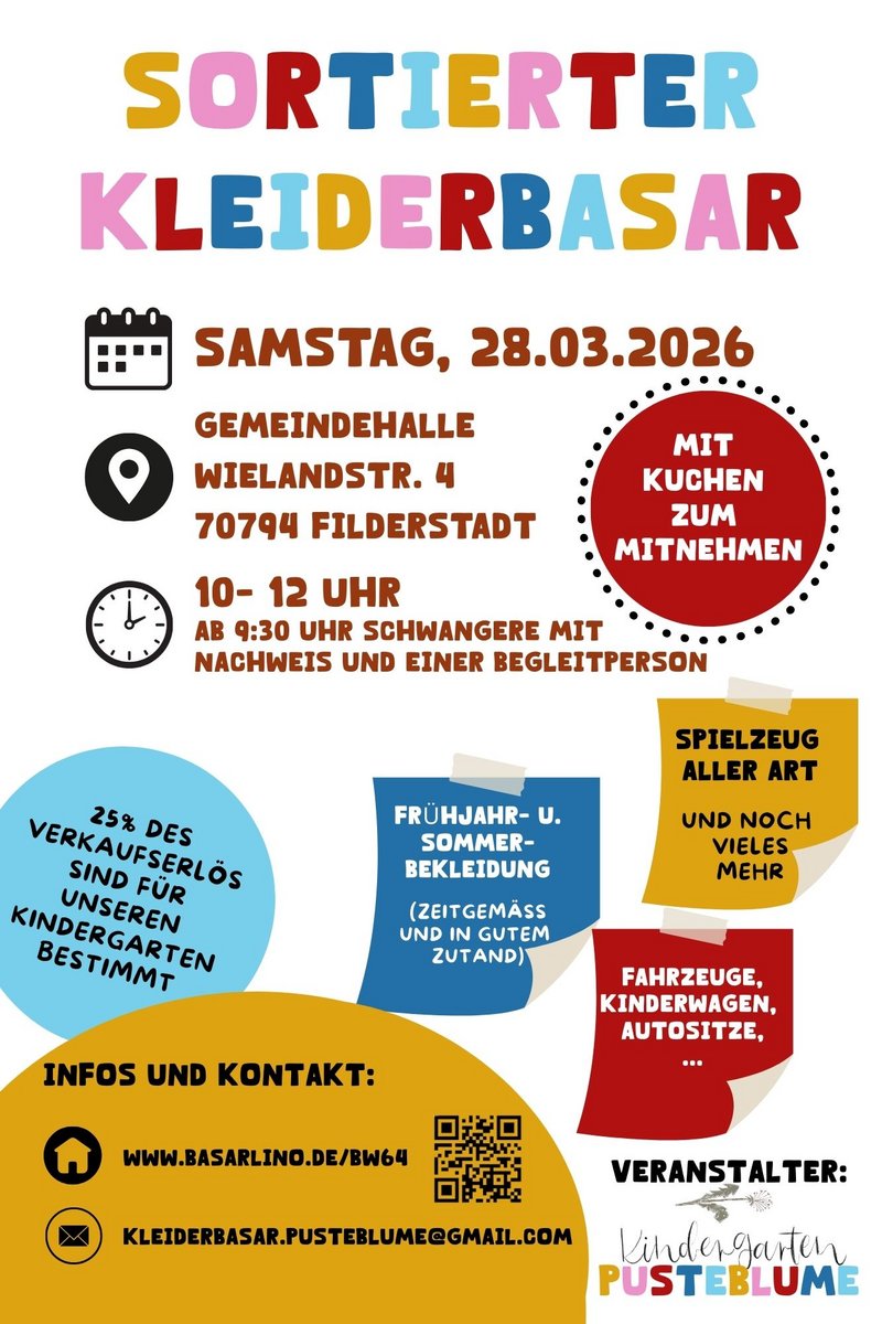 70794 FilderstadtDatum28.02.2026Zeit 9:30 - 12 Uhr Typ- vorsortierter Basar