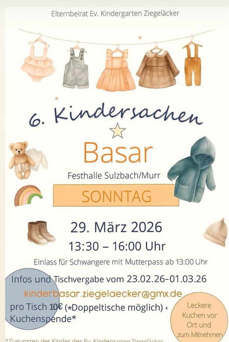 late night am Freitag 27.2. und early bird am Samstag 28.2. 09:30-11:00Kontakt mit dem Organisator aufnehmen - Simmozheimer KindersachenmarktGeißberghalle Simmozheim