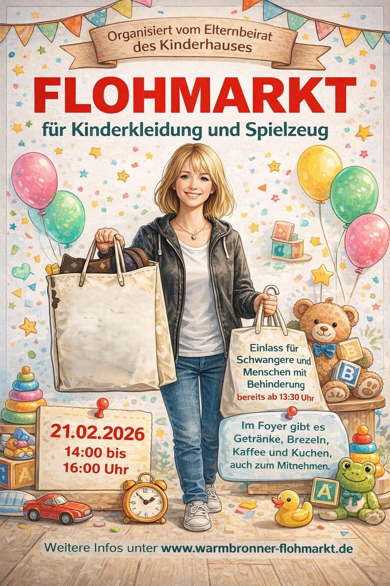 Datum21.02.2026Zeit 14 - 16:30 Uhr Typ- Flohmarkt mit Ständen