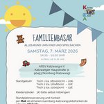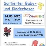 Einlass für Schwangere ab 11:30 Uhr, für alle anderen ab 12 UhrKontaktAnmeldung für Verkäufer über die basarlino AppKontakt mit dem Organisator aufnehmen - Kindersachen FlohmarktSport Kita Champini Nürnberg Zabo