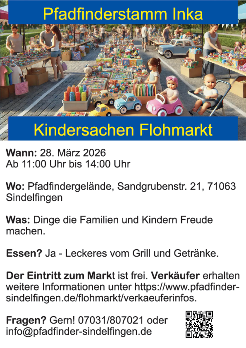 Der Erlös der Tischmieten geht an die austragenden Kindergärten, diese stellen die Helfer für den Auf- sowie Abbau und kümmern sich um die Verpflegung. Dadurch können Ausflüge oder neue Spielsachen für die Einrichtungen finanziert.Kontakt mit dem Organisator aufnehmen - Flohmarkt rund ums KindEvangelisches Gemeindehaus Schöckingen