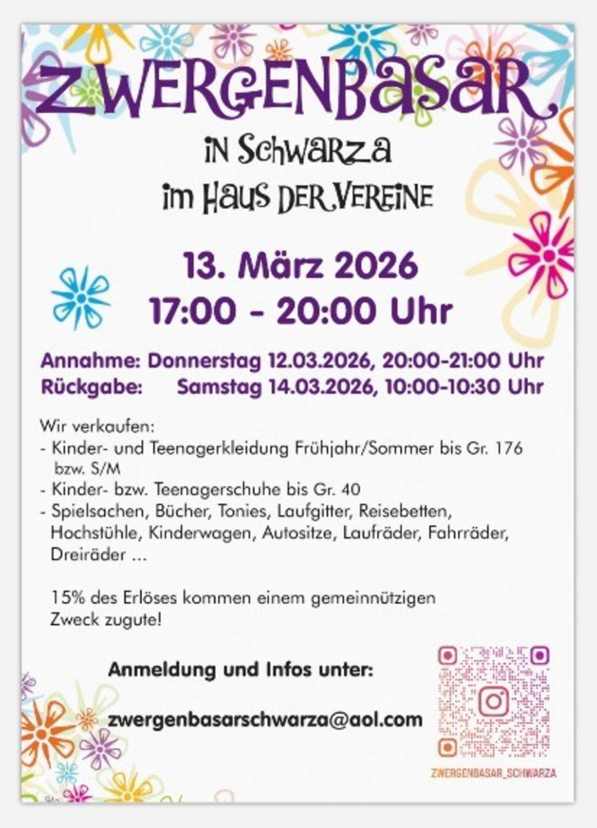 - Zwergenbasar SchwarzaHaus der Vereine Schwarza