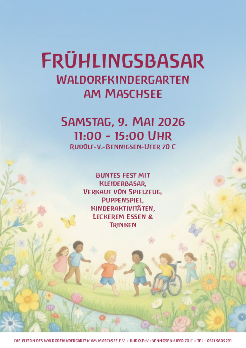 AdresseSonnenspielplatz HannoverHohenzollernstr. 18 a, 30161 MitteDer älteste und schönste Kinderbasar in Hannover! Wir erwarten euch mit Leckereien und Getränken, unser h..weitere InformationenDer älteste und schönste Kinderbasar in Hannover! Wir erwarten euch mit Leckereien und Getränken, unser herrlicher Außenbereich steht zum Verweilen und Pausieren zur Verfügung. Während der Basarzeit findet ihr bei uns saubere WCs vor! Eine evtl. erforderliche Absage wegen Regens o.Ä. wird auf unserer Facebook Seite (Waldsonne Kiosk) am Vortag bekanntgegeben. Ausweichtermin ist grundsätzlich exakt eine Woche später! Hier alle Termine 2026, Anmeldungen ab sofort möglich. Und nochmal: Ausweichtermin bei wetterbedingtem Ausfall ist immer 1 Woche später!: 22.03. / 19.04. / 03.05. / 07.06. / 28.06./ 09.08. / 30.08. / 27.09. / 18.10.. Tischanmeldungen bitte wie immer unter: waldsonne@mail.de Euer Waldsonne TeamDetails & KontaktKontakt mit dem Organisator aufnehmen - Kinderflohmarktv auf dem WakituWakitu Spielplatz in der Eilenriede