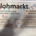 AdresseEssenLehmanns Brink 9, 45277 Überruhr-HinselDie Gebühr beträgt 10€ die den Kindern der Kita zur Gute kommen. Dafür bekommt man eine Fläche ..weitere InformationenDie Gebühr beträgt 10€ die den Kindern der Kita zur Gute kommen. Dafür bekommt man eine Fläche von circa 3 Metern. Tische müssen selber mitgenommen werden.Details & Kontakt