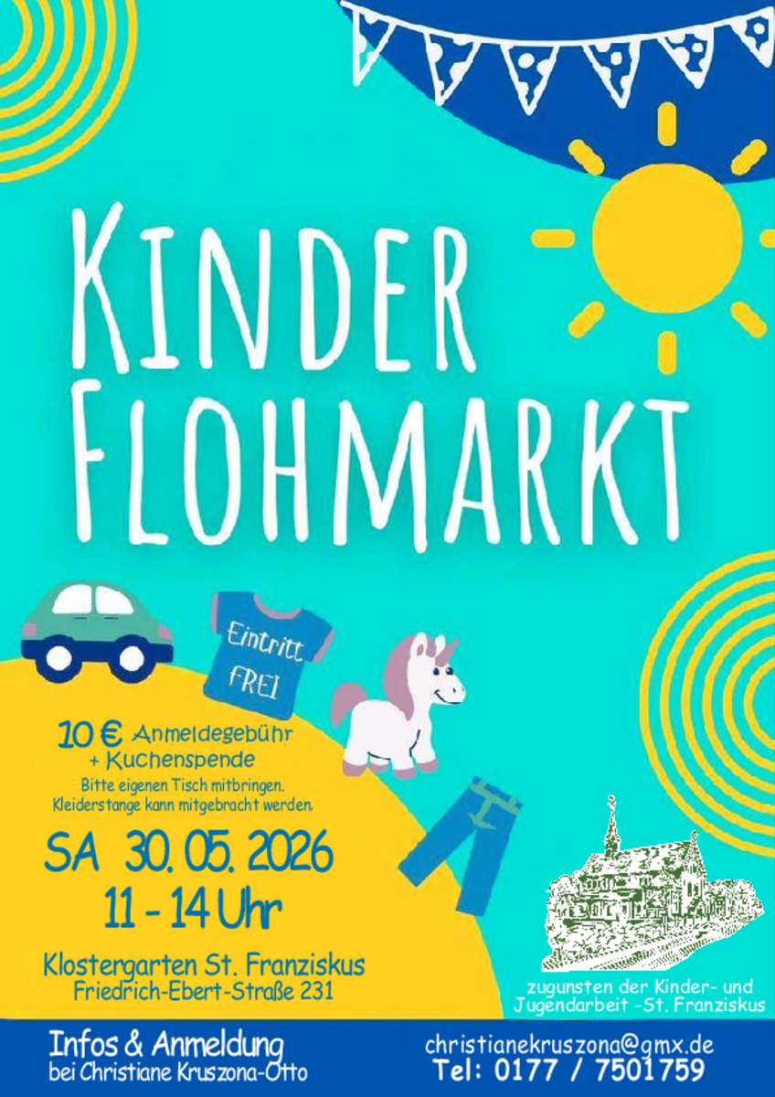 Parkplätze vor Ort vorhanden.KontaktSiehe Plakat - KinderflohmarktPaßstr. 2, Essen- Steele - Festsaal
