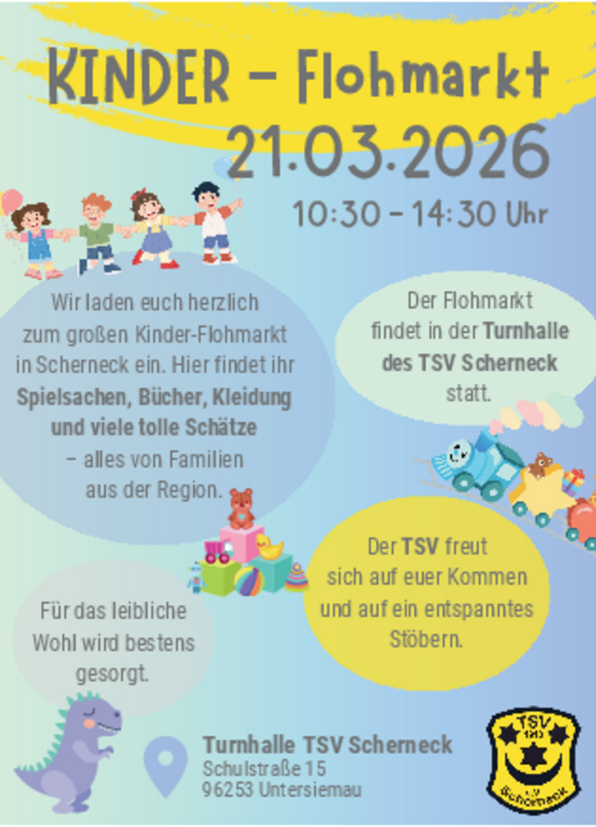 AdresseTSV ScherneckSchulstraße 15, 96253 Untersiemau ScherneckSelbstverkäufer Flohmarkt Kinderkleidung, Spielzeug, Bücher etc…..weitere InformationenSelbstverkäufer FlohmarktDetails & Kontakt