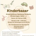 AdresseKinderbasar im Familienzentrum KreuzgrundHolunderweg 57, 74080 Heilbronn Böckingen🧸 Kinderbasar im Familienzentrum Kreuzgrund 🧸 Am 28. Februar 2026 ist es wieder so weit: Wir laden euch herzlic..weitere Informationen🧸 Kinderbasar im Familienzentrum Kreuzgrund 🧸Details & Kontakt