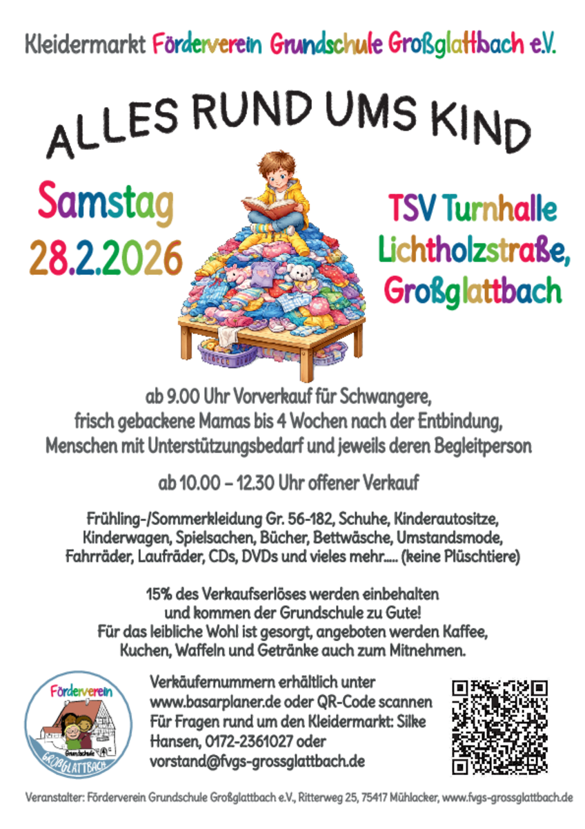 Bei Fragen bitte wenden an vorstand@fvgs-grossglattbach.deKontakt mit dem Organisator aufnehmen - Baby&KindersachenbasarFesthalle Leingarten