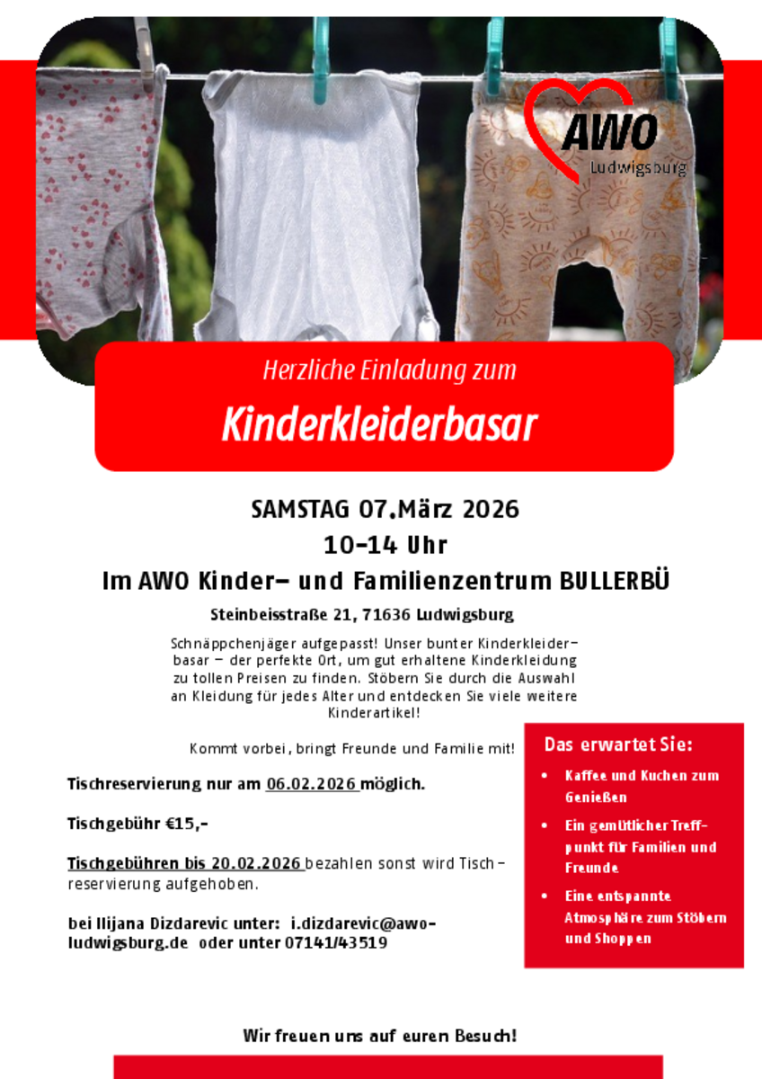 Am 28. Februar 2026 ist es wieder so weit: Wir laden euch herzlich zu unserem Kinderbasar ein!