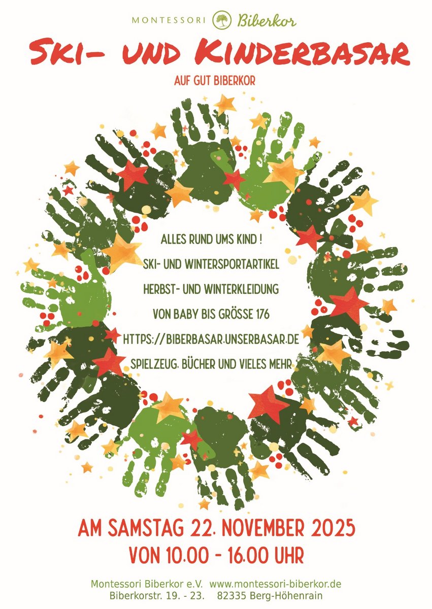 AdresseMontessori Schule BiberkorBiberkorstraße 19-23, 82335 BergDaxenmarkt trifft Biberbasar Alles rund ums Kind! • insbesondere gut erhaltene Ski/Snowboard Ausrüstung (S..weitere InformationenDaxenmarkt trifft BiberbasarDetails & Kontakt