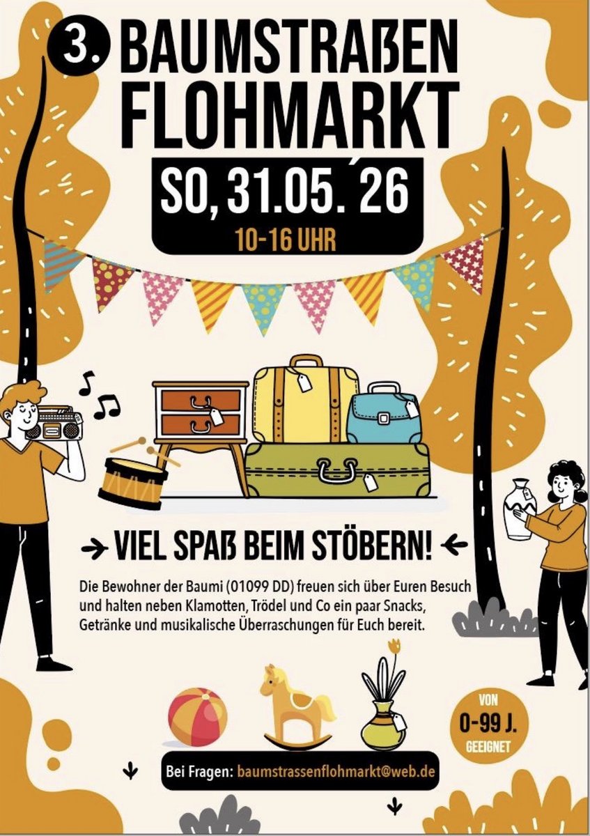 01069 DresdenDatum29.04.2026Zeit 10 - 14:30 Uhr Typ- Flohmarkt mit Ständen