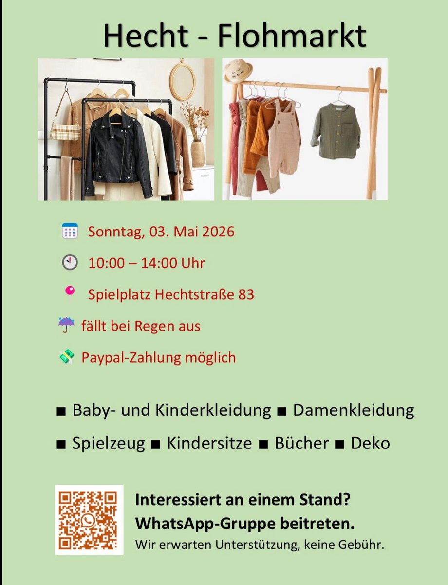 Datum24.04.2026Zeit 15 - 17:30 Uhr Typ- Flohmarkt mit Ständen