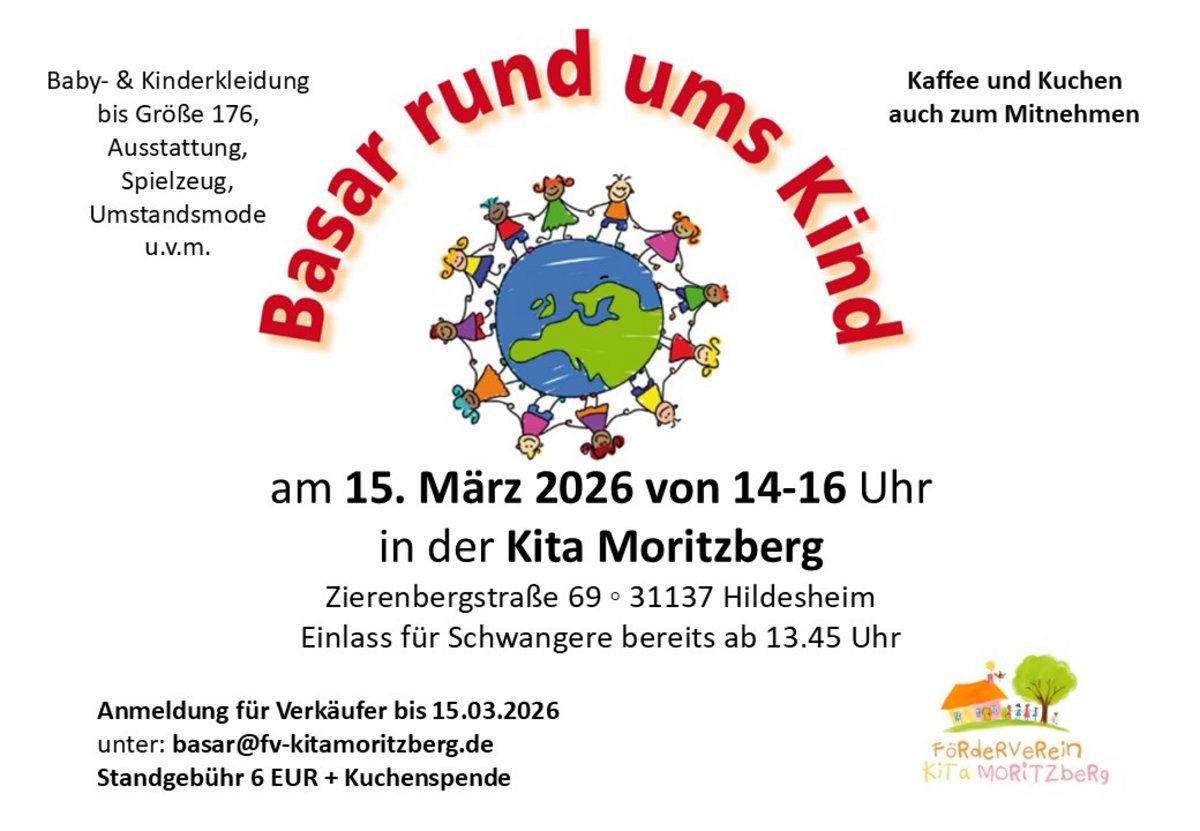 AdresseKita MoritzbergZierenbergstraße 69, 31137 Hildesheim HildesheimBasar mit allem zum Thema "Baby und Kinder". Auf drei Etagen gibt es Verkaufsstände. Es gibt leckeren K..weitere InformationenBasar mit allem zum Thema "Baby und Kinder".Details & Kontakt
