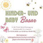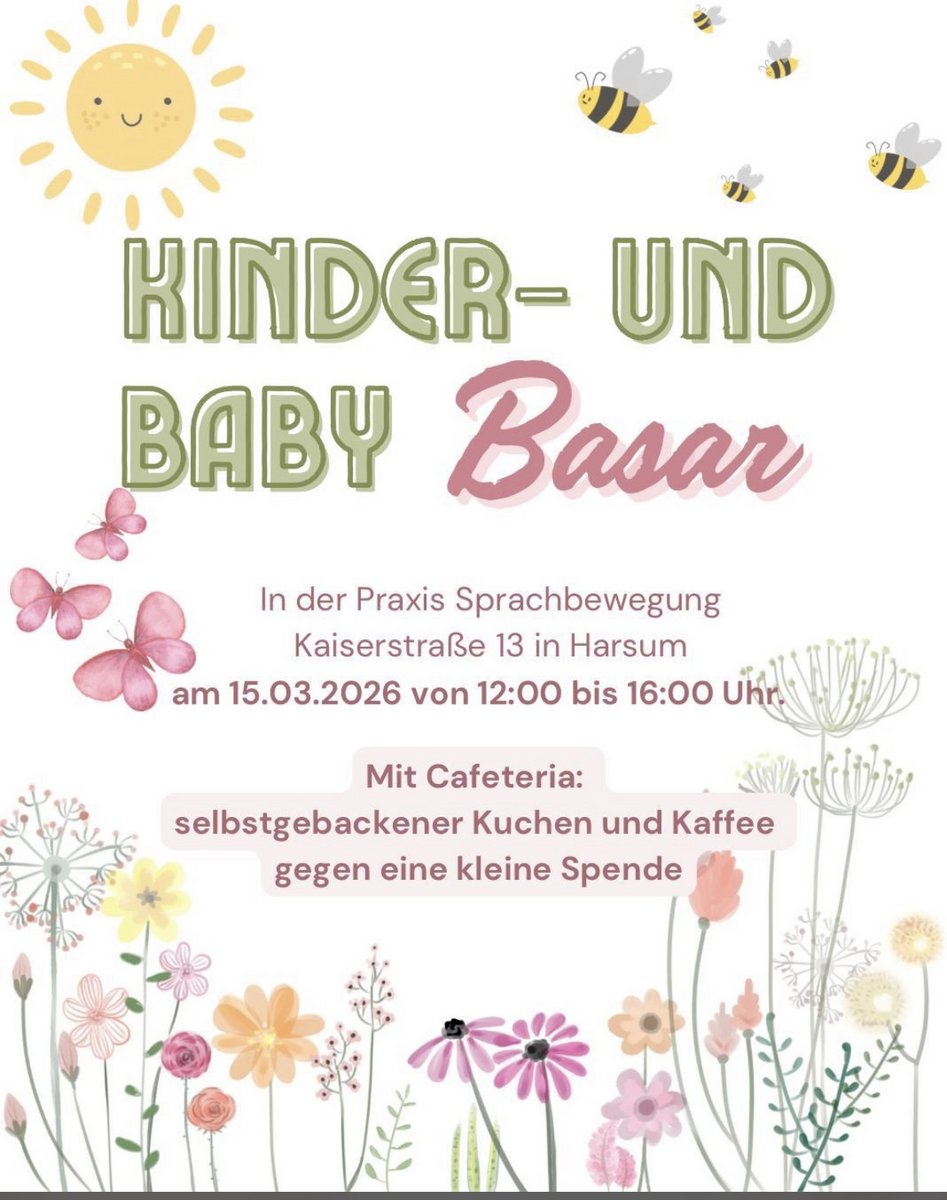 AdressePraxis SprachbewegungKaiserstraße 13, 31177 Harsum Harsum🌸Kinderkleiderbasar! Freut euch auf eine große Auswahl an gut erhaltener Baby- und Kinderkleidung – von d..weitere Informationen🌸Kinderkleiderbasar! Freut euch auf eine große Auswahl an gut erhaltener Baby- und Kinderkleidung – von den Allerkleinsten bis ins Grundschulalter . Ob niedliche Strampler, bequeme Alltagskleidung, Jacken für jedes Wetter oder besondere Lieblingsstücke – hier ist für jeden etwas dabei.Details & Kontakt