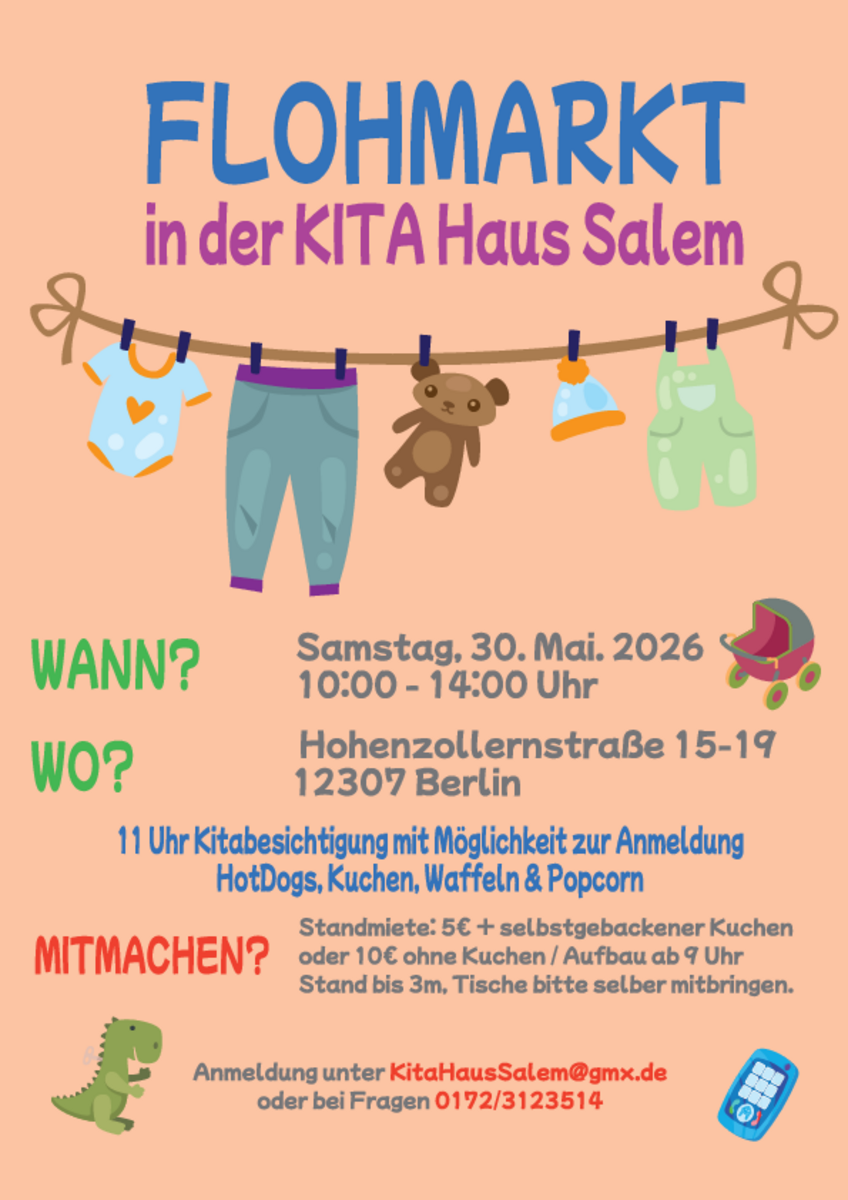 Viele Grüße die Kita MüggelzwergeKontakt mit dem Organisator aufnehmen - Flohmarkt für alleGemeinde Heilig Geist - Oldenburgallee/ Ecke Bayernallee