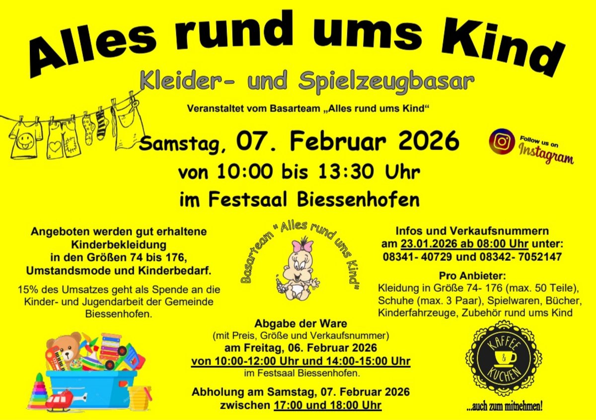 Weitere Infos (auch für Verkäufer) auf Insta unter: kinderbasar_biessenhofen