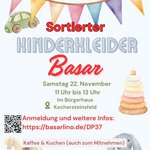 Datum08.11.2025Zeit 14 - 15:30 Uhr Typ- vorsortierter Basar