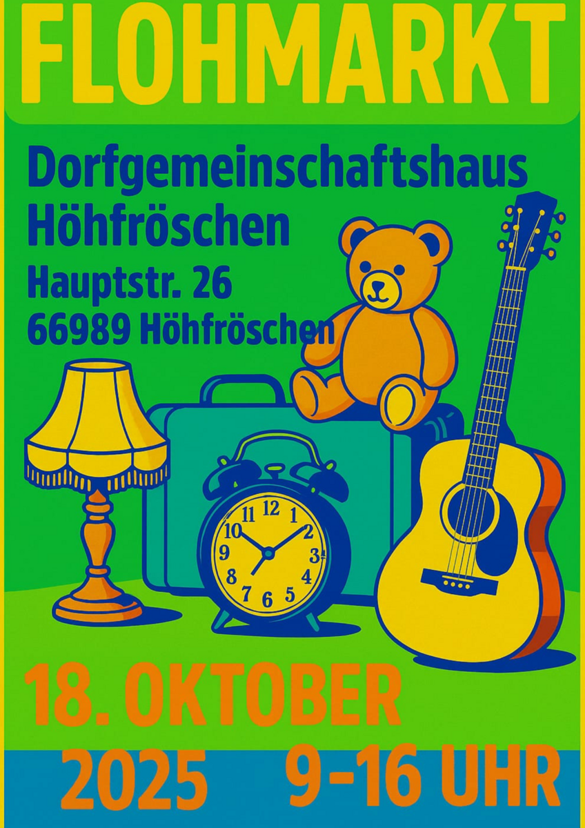 66989 HöhfröschenDatum18.10.2025Zeit 9 - 16 Uhr Typ- Flohmarkt mit Ständen