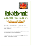 wir laden euch herzlich zu unserem herbstlichen Kindersachen-Flohmarkt mit Kaffee- und Kuchenbasar ein!
