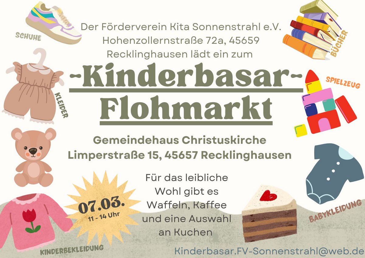 Anmeldung: fv-kunterbunt-kita-st.ludgerus@gmx.de (10 € Gebühr, 25 % Umsatz für den Förderverein)