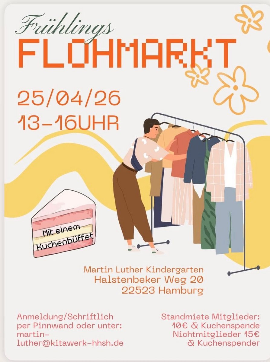 Lust mitzumachen? Dann melde deinen Stand gleich an unter flohmarkt@jls-hh.net! Für 15€ plus Kuchenspende oder 20€ ohne Kuchenspende pro 3 Meter bist du dabei!